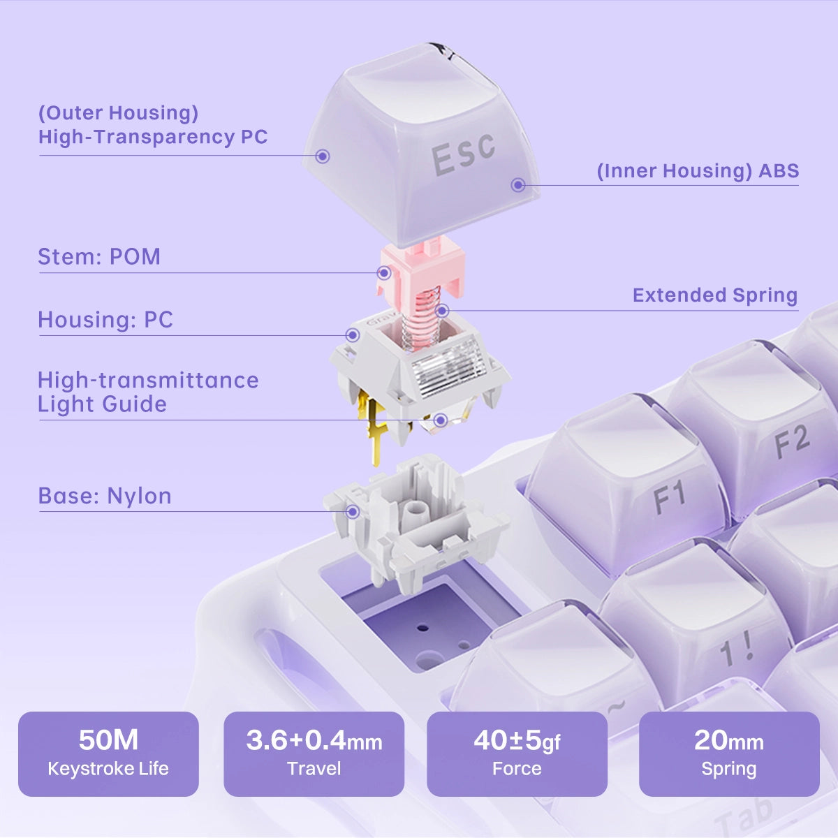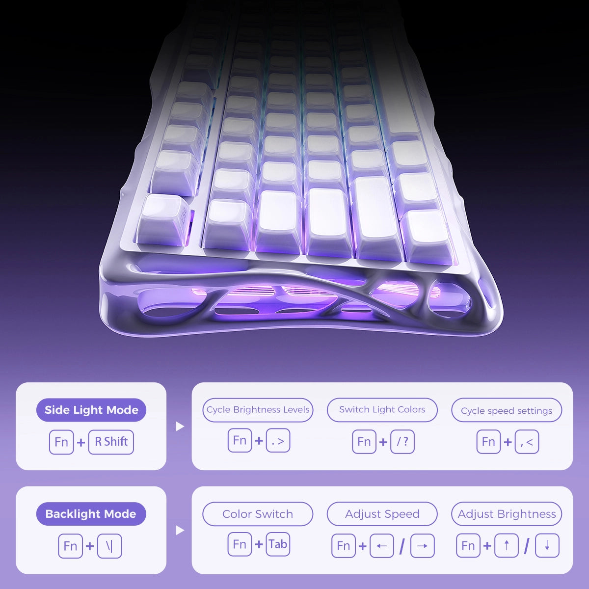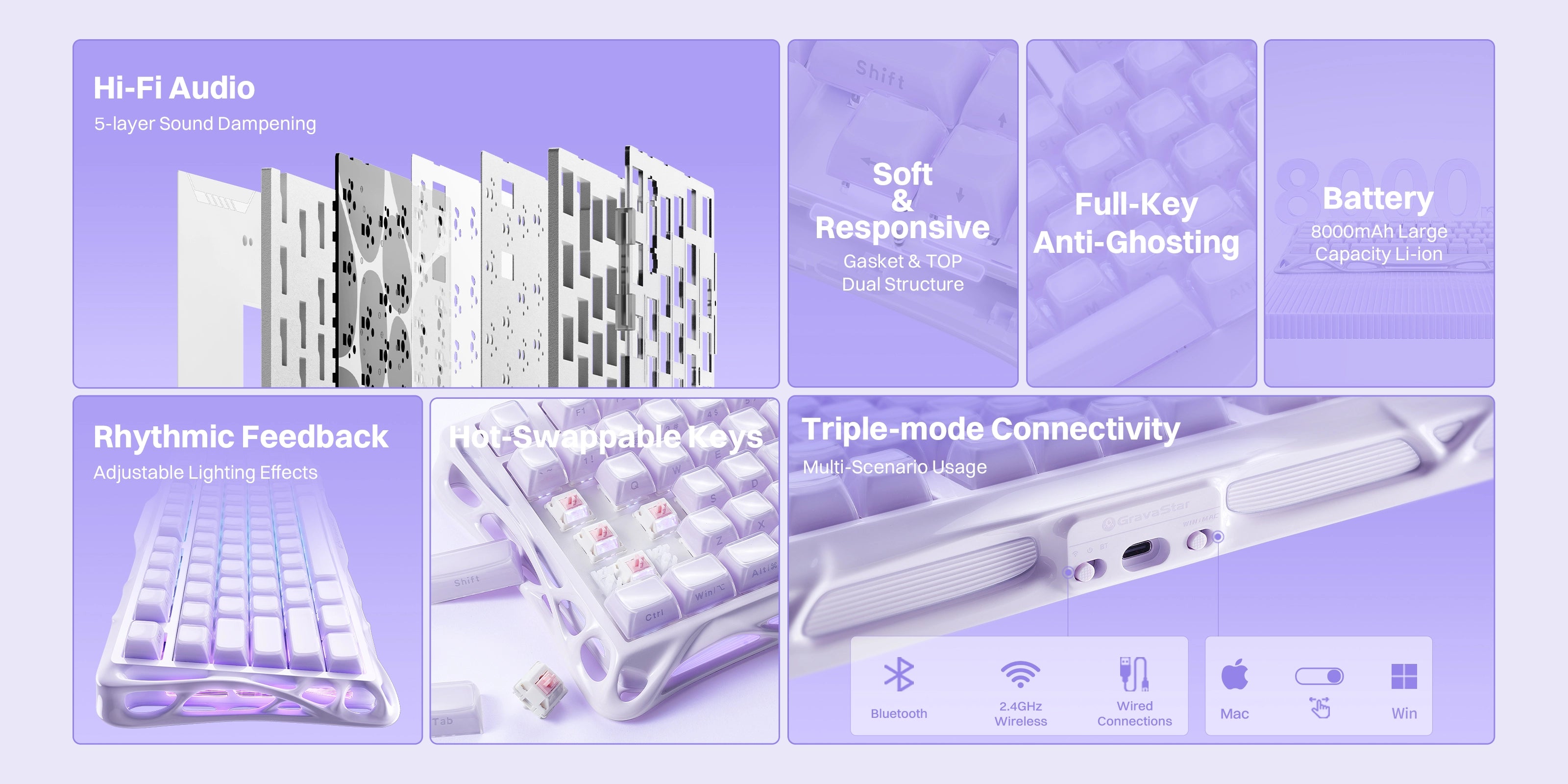 The Mercury K1 delivers a refined acoustic signature—deep, satisfying "thock" at moderate volumes with crisp, responsive feedback. Swap switches or keycaps to dial in your perfect sound. No modding required.