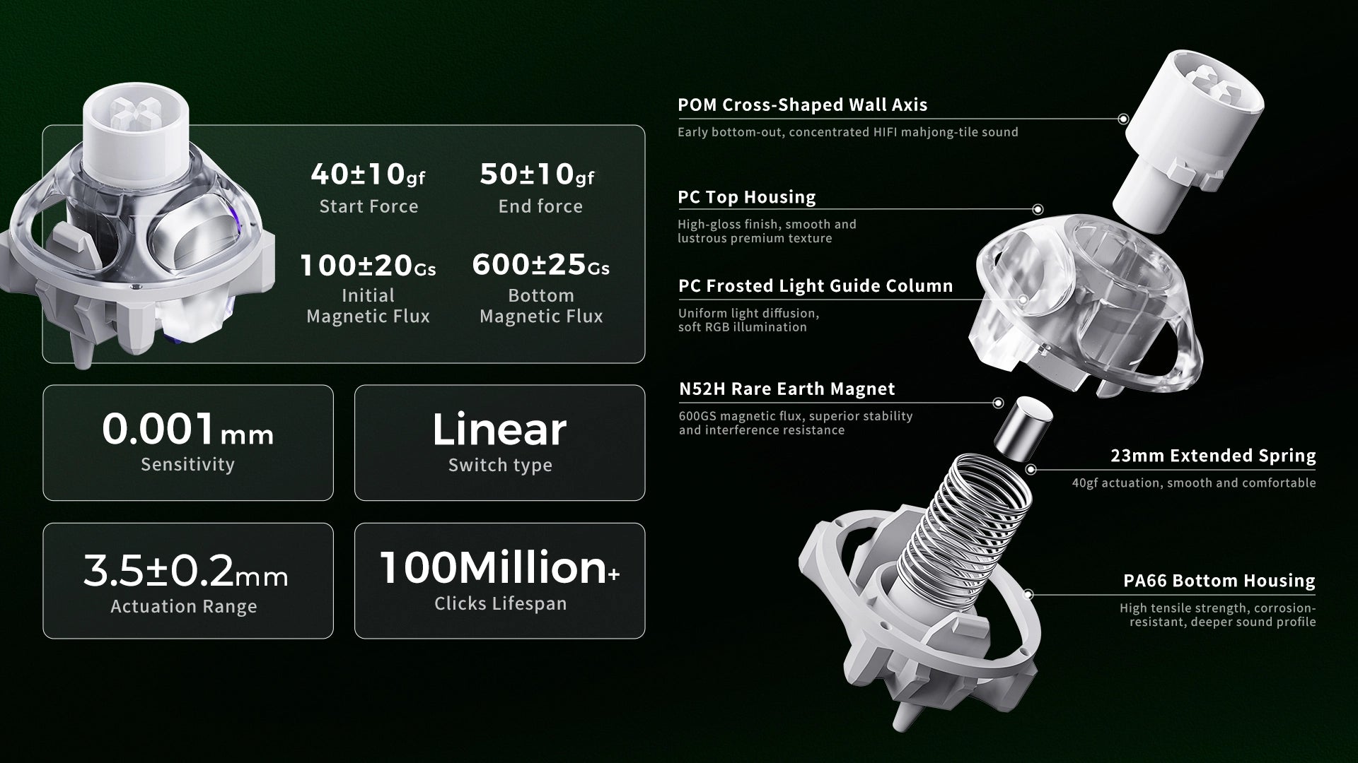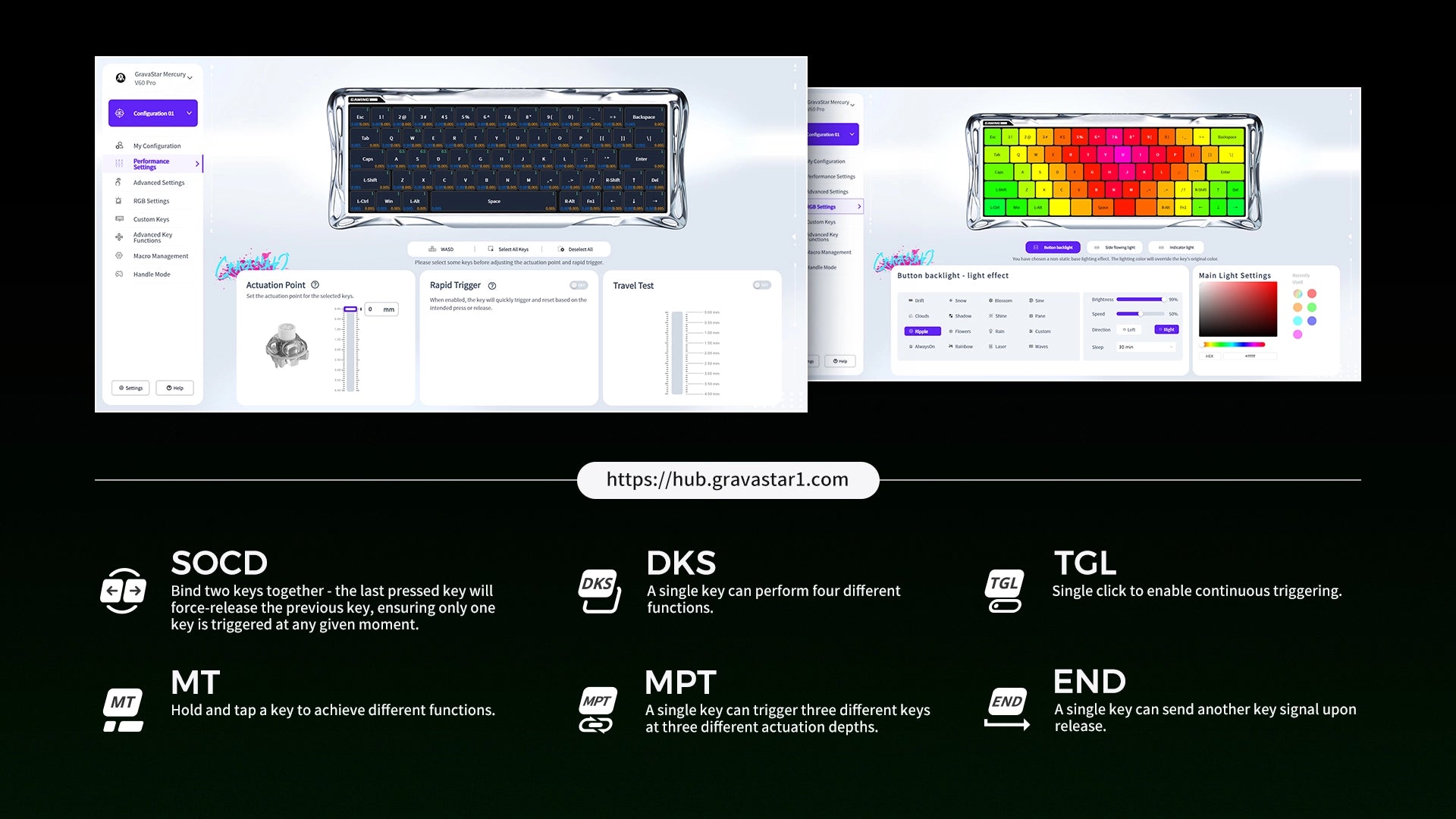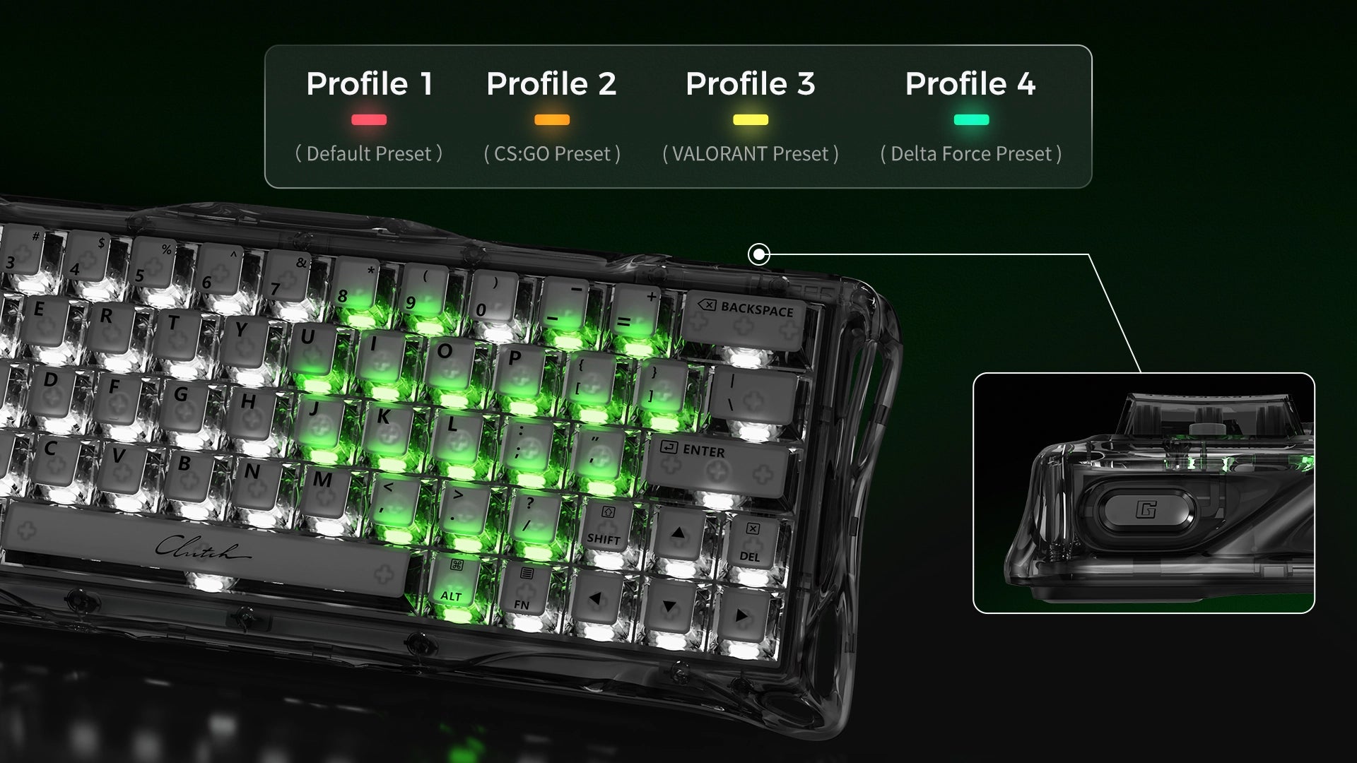 Control each key’s actuation point from 0.1 mm to 4.0 mm. Fine-tune every press to match your playstyle and gain speed advantage.