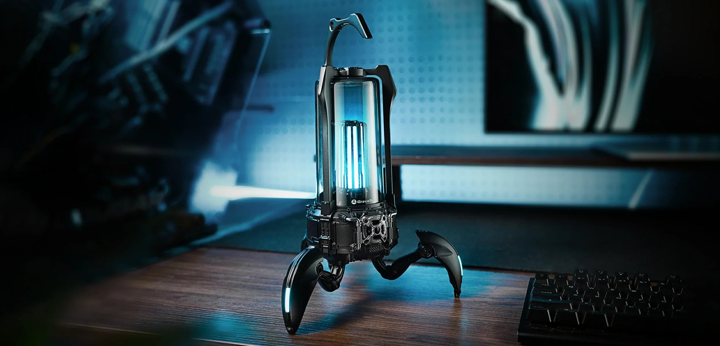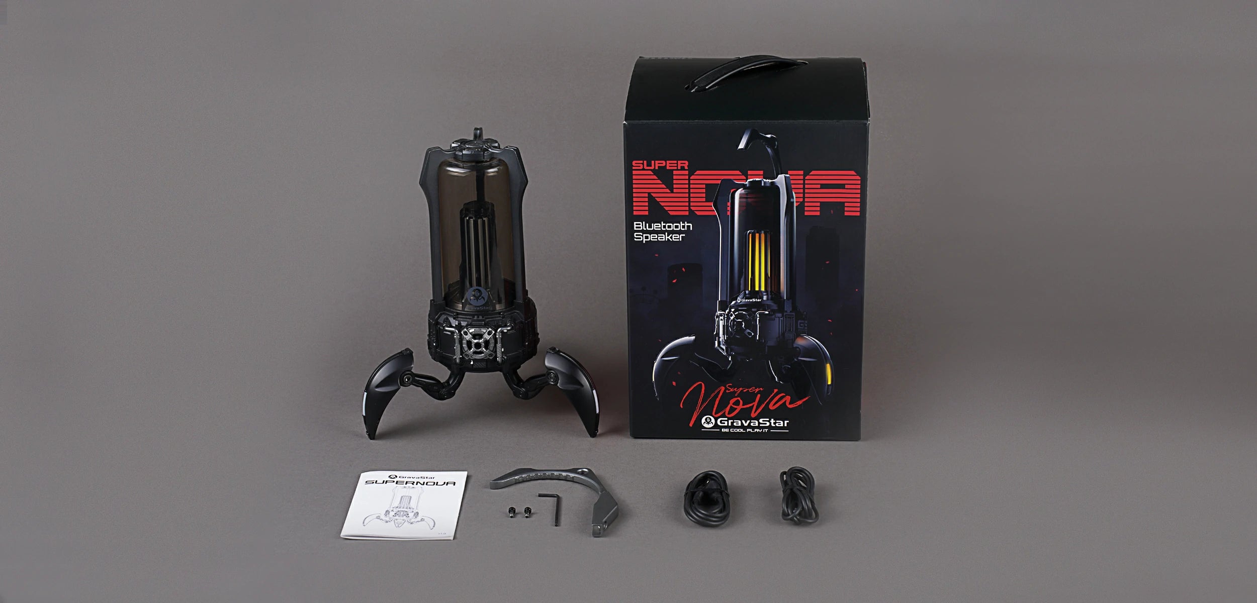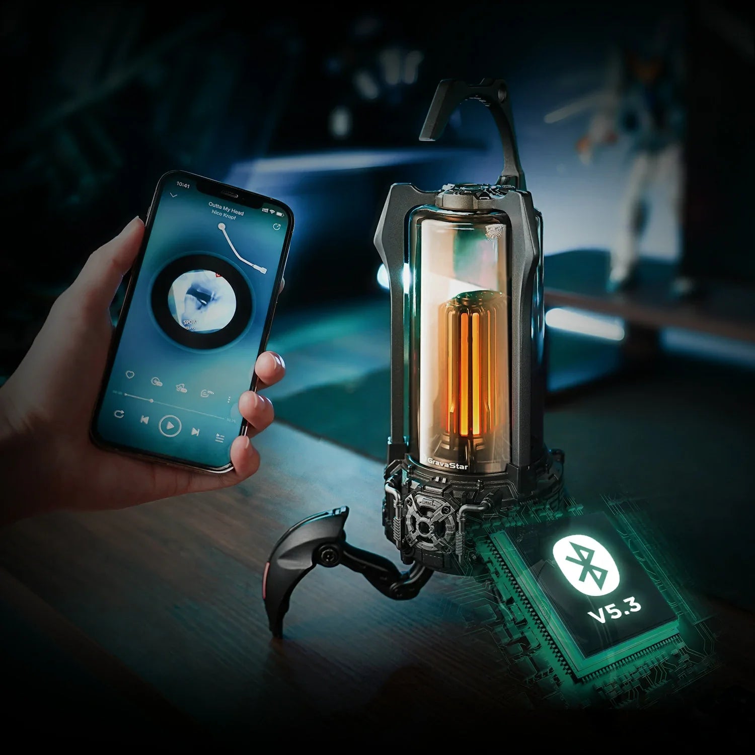The Supernova fuses a high-fidelity speaker system with a classic lantern design on a futuristic mecha walker base. Carry it with you on the go or around the house, then deploy its 3 foldable legs for solid support on any surface.