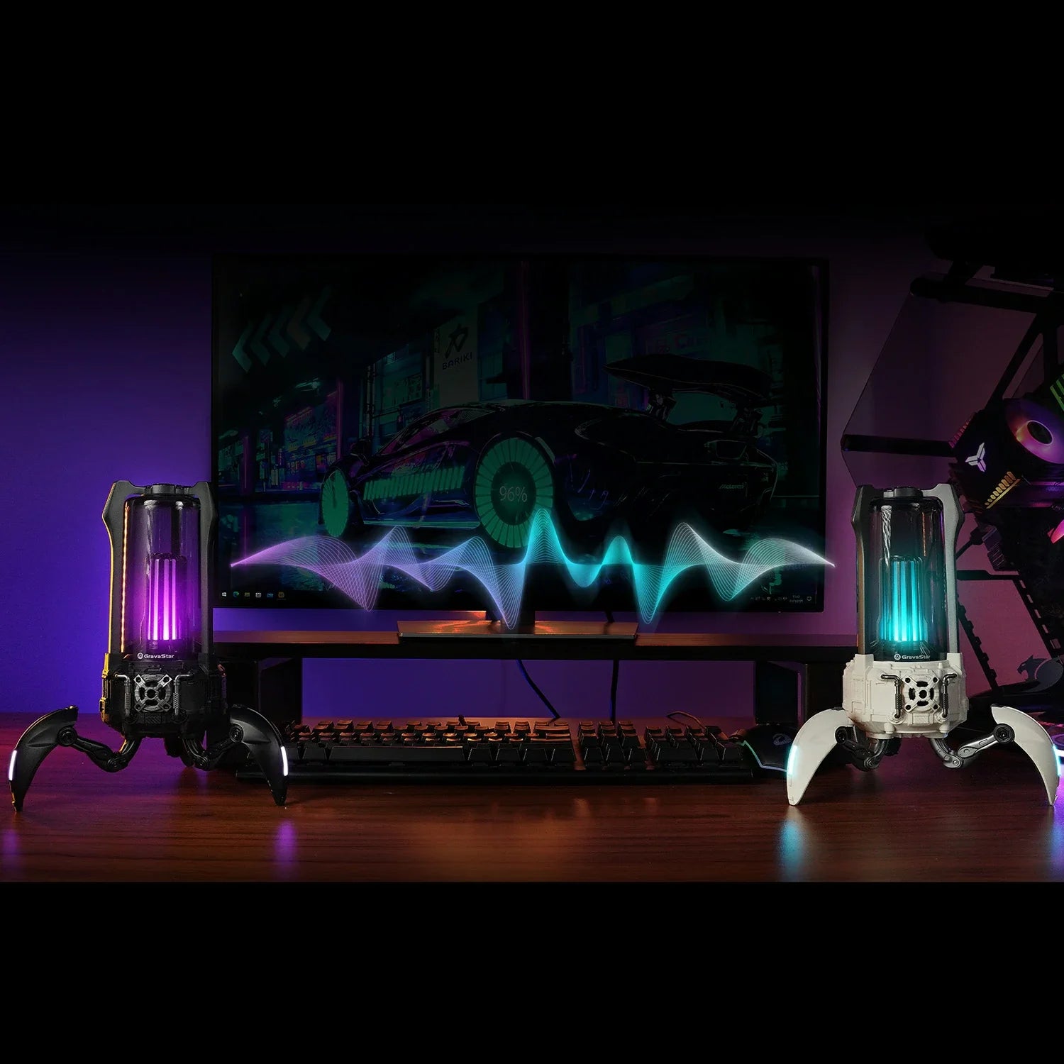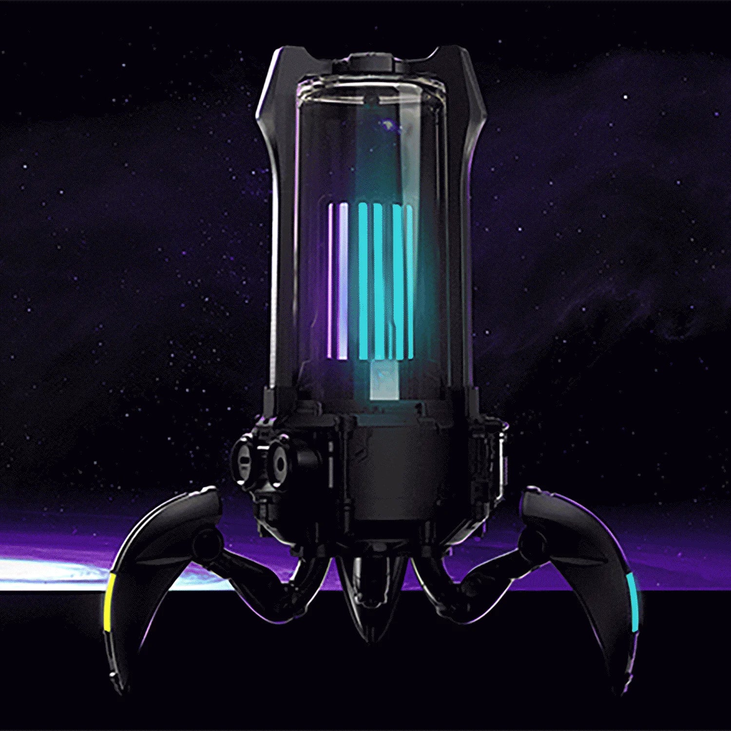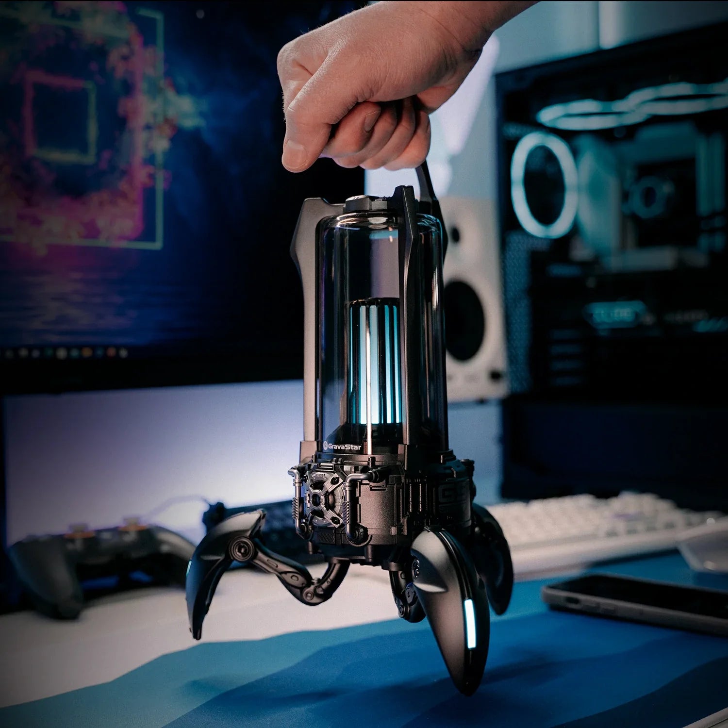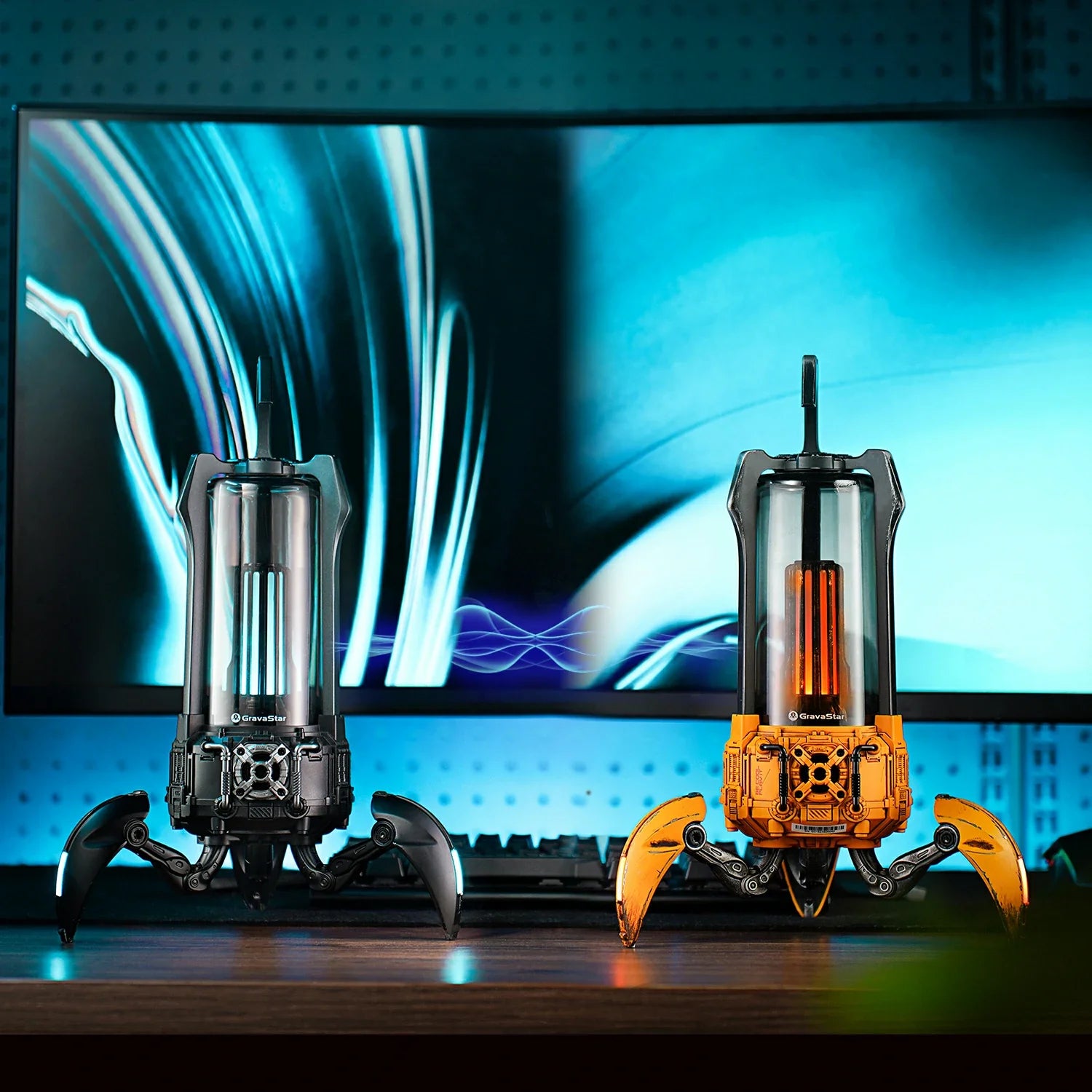 The Supernova fuses a high-fidelity speaker system with a classic lantern design on a futuristic mecha walker base. Carry it with you on the go or around the house, then deploy its 3 foldable legs for solid support on any surface.